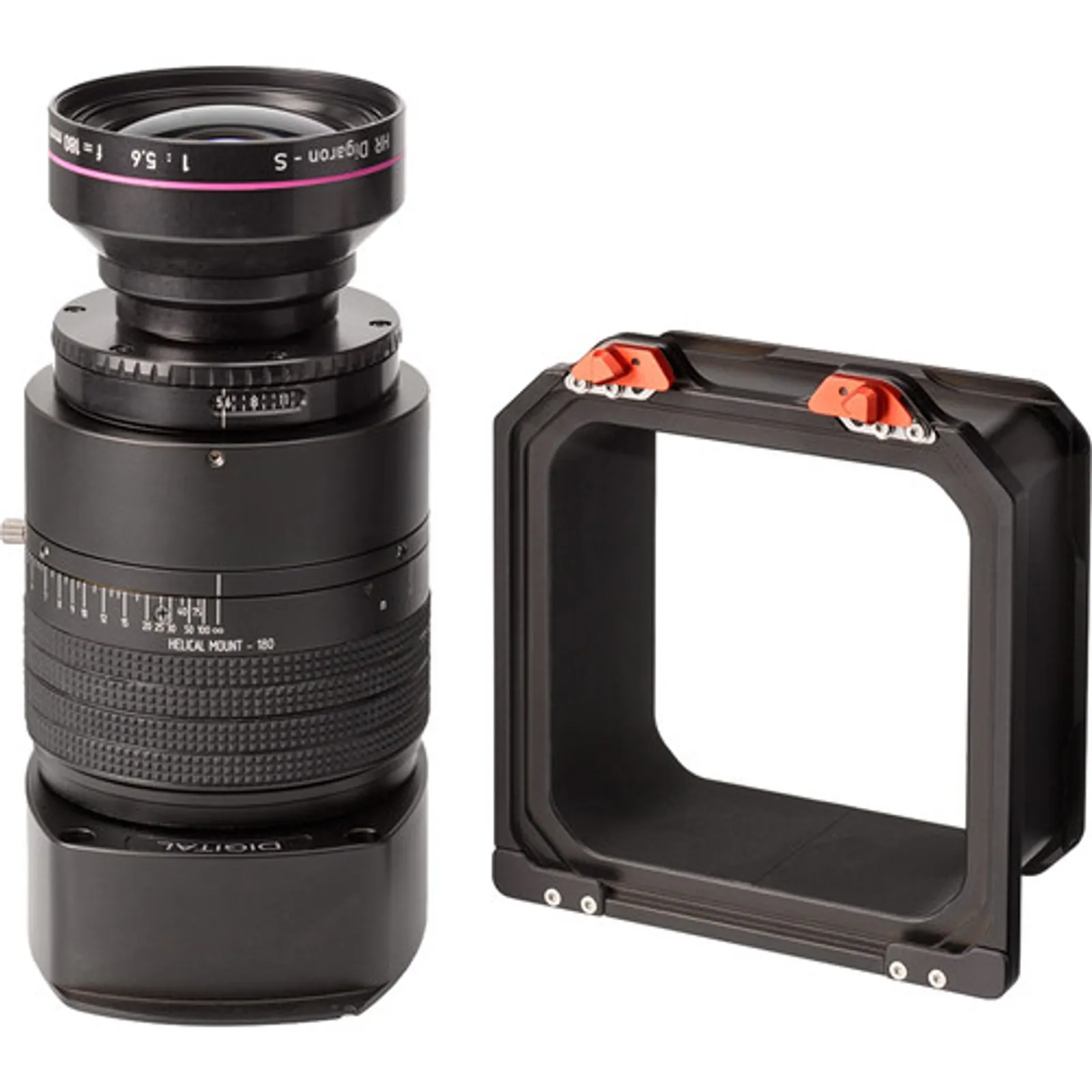 A specialized lens panel designed specifically for WDS and WRS camera systems, featuring a Rodenstock HR Digaron-S 180mm f/5.6 Lens with a helical focusing mechanism. This lens panel is tailored to cater to digital backs equipped with an electronic shutter while its split-back design aims to reduce vignetting.